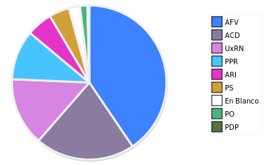 - Columna Porcentaje sobre Válidos no toma en cuenta los votos en blanco ni nulos (usado para D'Hondt de corresponder).