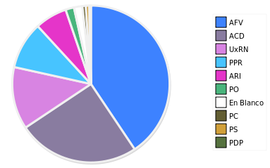 - Columna Porcentaje sobre Válidos no toma en cuenta los votos en blanco ni nulos (usado para D'Hondt de corresponder).