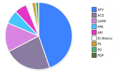 | 411 | ALIANZA CONCERTACION PARA EL DESARROLLO | 62 | 22.38% | -- | 23.40% |