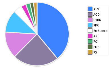 - Columna Porcentaje sobre Válidos no toma en cuenta los votos en blanco ni nulos (usado para D'Hondt de corresponder).