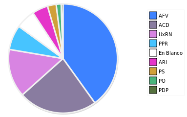 - Columna Porcentaje sobre Válidos no toma en cuenta los votos en blanco ni nulos (usado para D'Hondt de corresponder).