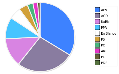 - Columna Porcentaje sobre Válidos no toma en cuenta los votos en blanco ni nulos (usado para D'Hondt de corresponder).