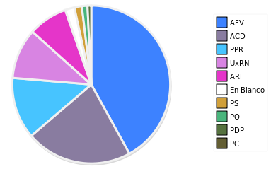 - Columna Porcentaje sobre Válidos no toma en cuenta los votos en blanco ni nulos (usado para D'Hondt de corresponder).