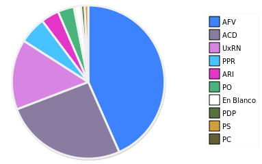 - Columna Porcentaje sobre Válidos no toma en cuenta los votos en blanco ni nulos (usado para D'Hondt de corresponder).