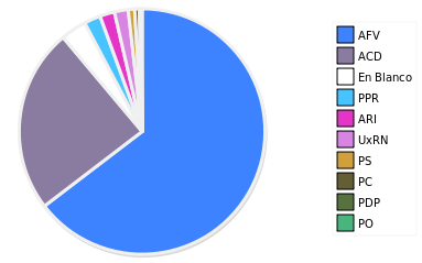 - Columna Porcentaje sobre Válidos no toma en cuenta los votos en blanco ni nulos (usado para D'Hondt de corresponder).