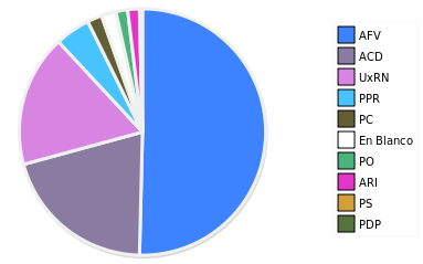 - Columna Porcentaje sobre Válidos no toma en cuenta los votos en blanco ni nulos (usado para D'Hondt de corresponder).