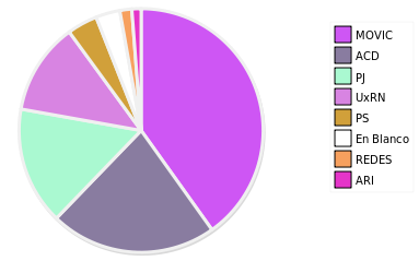- Columna Porcentaje sobre Válidos no toma en cuenta los votos en blanco ni nulos (usado para D'Hondt de corresponder).
