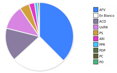 - Columna Porcentaje sobre Válidos no toma en cuenta los votos en blanco ni nulos (usado para D'Hondt de corresponder).