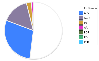 | Votos en BLANCO | 146 | 51.59% | -- | --- | |