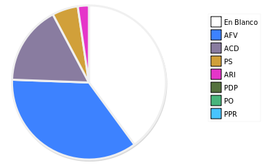 - Columna Porcentaje sobre Válidos no toma en cuenta los votos en blanco ni nulos (usado para D'Hondt de corresponder).