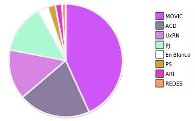 - Columna Porcentaje sobre Válidos no toma en cuenta los votos en blanco ni nulos (usado para D'Hondt de corresponder).