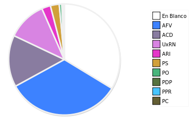- Columna Porcentaje sobre Totales toma en cuenta los votos en blanco y nulos (a titulo informativo).
