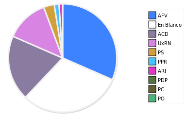 - Columna Porcentaje sobre Válidos no toma en cuenta los votos en blanco ni nulos (usado para D'Hondt de corresponder).