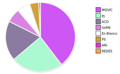 - Columna Porcentaje sobre Válidos no toma en cuenta los votos en blanco ni nulos (usado para D'Hondt de corresponder).