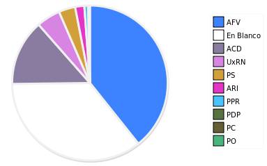 - Columna Porcentaje sobre Válidos no toma en cuenta los votos en blanco ni nulos (usado para D'Hondt de corresponder).