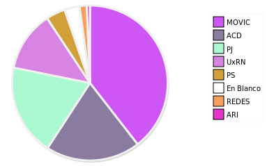 - Columna Porcentaje sobre Válidos no toma en cuenta los votos en blanco ni nulos (usado para D'Hondt de corresponder).