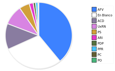 - Columna Porcentaje sobre Válidos no toma en cuenta los votos en blanco ni nulos (usado para D'Hondt de corresponder).