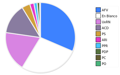 - Columna Porcentaje sobre Válidos no toma en cuenta los votos en blanco ni nulos (usado para D'Hondt de corresponder).