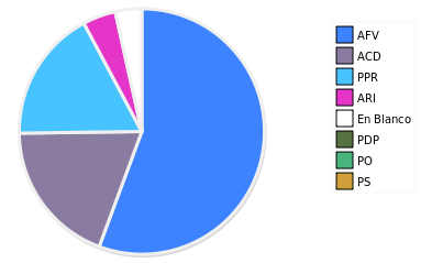 - Columna Porcentaje sobre Válidos no toma en cuenta los votos en blanco ni nulos (usado para D'Hondt de corresponder).