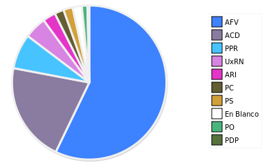 - Columna Porcentaje sobre Válidos no toma en cuenta los votos en blanco ni nulos (usado para D'Hondt de corresponder).