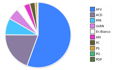 - Columna Porcentaje sobre Válidos no toma en cuenta los votos en blanco ni nulos (usado para D'Hondt de corresponder).