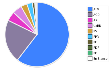 - Columna Porcentaje sobre Válidos no toma en cuenta los votos en blanco ni nulos (usado para D'Hondt de corresponder).