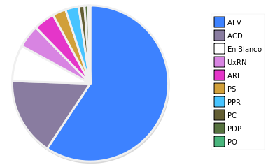 - Columna Porcentaje sobre Válidos no toma en cuenta los votos en blanco ni nulos (usado para D'Hondt de corresponder).