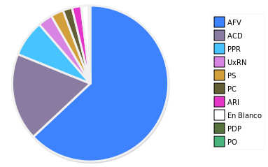 - Columna Porcentaje sobre Válidos no toma en cuenta los votos en blanco ni nulos (usado para D'Hondt de corresponder).