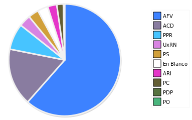 - Columna Porcentaje sobre Válidos no toma en cuenta los votos en blanco ni nulos (usado para D'Hondt de corresponder).