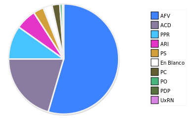| 47 | COALICION CIVICA-AFIRMACIÓN PARA UNA REPÚBLICA IGUALITARIA | 16 | 5.95% | -- | 6.23% |