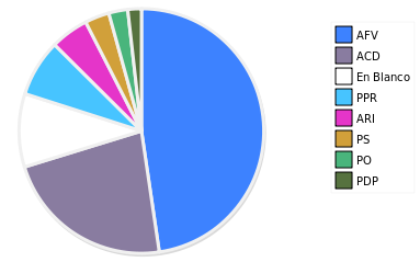 - Columna Porcentaje sobre Válidos no toma en cuenta los votos en blanco ni nulos (usado para D'Hondt de corresponder).