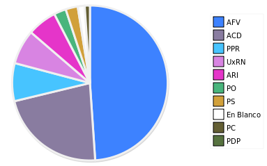 | 411 | ALIANZA CONCERTACION PARA EL DESARROLLO | 62 | 21.83% | -- | 22.63% |