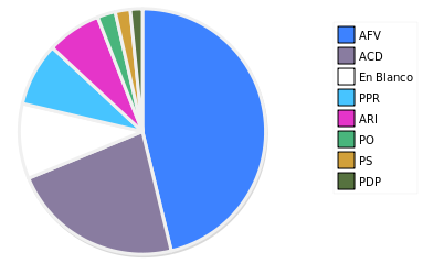 - Columna Porcentaje sobre Válidos no toma en cuenta los votos en blanco ni nulos (usado para D'Hondt de corresponder).