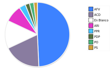 - Columna Porcentaje sobre Válidos no toma en cuenta los votos en blanco ni nulos (usado para D'Hondt de corresponder).