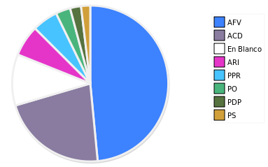 - Columna Porcentaje sobre Válidos no toma en cuenta los votos en blanco ni nulos (usado para D'Hondt de corresponder).