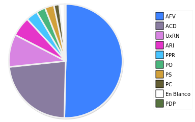 - Columna Porcentaje sobre Válidos no toma en cuenta los votos en blanco ni nulos (usado para D'Hondt de corresponder).