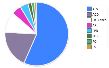 - Columna Porcentaje sobre Válidos no toma en cuenta los votos en blanco ni nulos (usado para D'Hondt de corresponder).