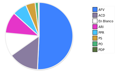 - Columna Porcentaje sobre Válidos no toma en cuenta los votos en blanco ni nulos (usado para D'Hondt de corresponder).