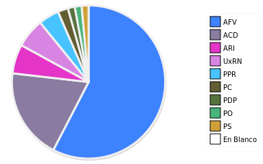 - Columna Porcentaje sobre Válidos no toma en cuenta los votos en blanco ni nulos (usado para D'Hondt de corresponder).
