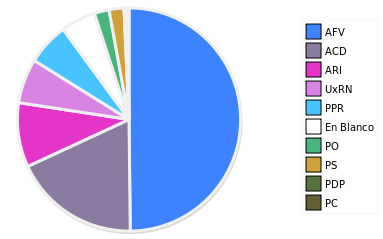 - Columna Porcentaje sobre Válidos no toma en cuenta los votos en blanco ni nulos (usado para D'Hondt de corresponder).