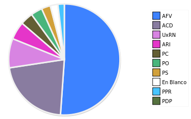 - Columna Porcentaje sobre Válidos no toma en cuenta los votos en blanco ni nulos (usado para D'Hondt de corresponder).