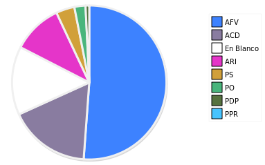 - Columna Porcentaje sobre Válidos no toma en cuenta los votos en blanco ni nulos (usado para D'Hondt de corresponder).
