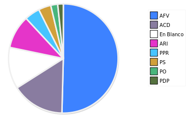 - Columna Porcentaje sobre Válidos no toma en cuenta los votos en blanco ni nulos (usado para D'Hondt de corresponder).