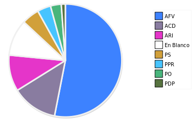 - Columna Porcentaje sobre Válidos no toma en cuenta los votos en blanco ni nulos (usado para D'Hondt de corresponder).