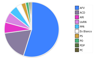 | 47 | COALICION CIVICA-AFIRMACIÓN PARA UNA REPÚBLICA IGUALITARIA | 138 | 6.27% | -- | 6.64% |