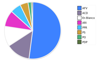 - Columna Porcentaje sobre Válidos no toma en cuenta los votos en blanco ni nulos (usado para D'Hondt de corresponder).
