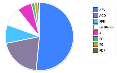 - Columna Porcentaje sobre Válidos no toma en cuenta los votos en blanco ni nulos (usado para D'Hondt de corresponder).