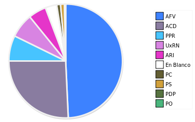 - Columna Porcentaje sobre Válidos no toma en cuenta los votos en blanco ni nulos (usado para D'Hondt de corresponder).