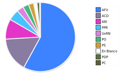- Columna Porcentaje sobre Válidos no toma en cuenta los votos en blanco ni nulos (usado para D'Hondt de corresponder).