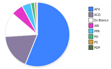 - Columna Porcentaje sobre Válidos no toma en cuenta los votos en blanco ni nulos (usado para D'Hondt de corresponder).